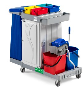 Ideale per ambienti dove è necessario loccorrente per le operazioni di spolvero, raccolta rifiuti, lavaggio pavimenti e superfici, tutto in un carrello.