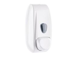 Dispenser personalizzato "Sutter Care" per i prodotti lavamani e saponi in crema ANTIBAC CREAM 5 L e LOTION CREAM 5 L. Dispenser a riempimento con capacità di 900 ml e con finestra colorata azzurra, utile anche per controllare il livello di prodotto. Erogazione: 1 ml/dose.