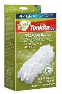 La qualità Tonkita dei piumini catturapolvere in versione green: i ricambi sono realizzati con fibre riciclate. Il piumino Tonkita We Like Green è ideale per un rapido ed efficace spolvero di mobili, librerie, lampadari, schermi TV, PC, impianti hi-fi. Con migliaia di sottilissime e soffici fibre ad elevato potere elettrostatico imprigiona la polvere e lo sporco minuto. Grazie alla sua forma morbida e flessibile, si adatta alle superfici da pulire e penetra negli spazi più difficili.