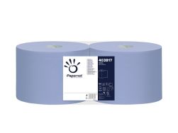 Bobina a 700 strappi. La colorazione blu che caratterizza la bobina consente di rendere immediatamente visibile anche il più piccolo residuo. Idonea al contatto con gli alimenti