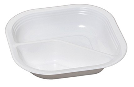Contenitore quadrato biscomparto, temperatura di utilizzo da Da -40°C a +120°C per 1h. cm. 18x18x3,6(h)