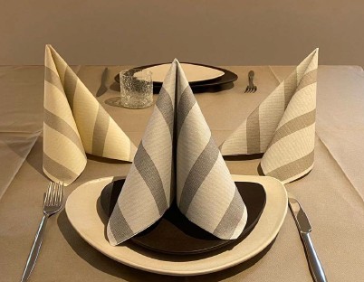tovaglioli in carta a secco di alta qualità e grammatura, materiale di derivazione naturale in cui le fibre di cellulosa sono fissate da leganti vinilici per ottenere una maggiore resistenza alla trazione. Nascono all'origine in bianco e vengono poi stampati con un'ottima tenuta del colore, dovuta al forte coefficiente di assorbenza. Estremamente resistenti, morbidi e assorbenti, sono disponibili in diverse tonalità di colore per adattarsi a ogni tavola e a ogni occasione.