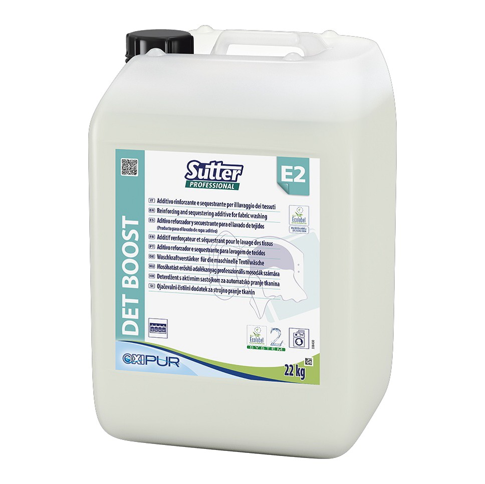 Detergente additivo rinforzante per il lavaggio automatico dei tessuti. Alto potere sequestrante per neutralizzare i problemi legati alla durezza dell'acqua. Aumenta il potere lavante del detergente durante la fase di lavaggio e aiuta a mantenere il punto di bianco sui capi. Certificato Ecolabel: IT/039/004.