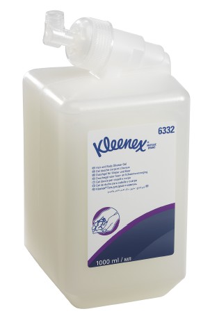 Il gel doccia/shampoo Kleenex® è studiatoper detergere delicatamente e in profondità. Un gelbianco, dalla fragranza delicata, arricchito con ingredientiidratanti, caratterizzato da una formulazione densa e dauna fragranza delicata. Compatibile con numerosidispenser per poterlo utilizzare in qualsiasi bagno:Aquarius bianco (codice 6948), nero (codice 7173) eacciaio inossidabile (codice 8973).Ricarica facile: i fl aconivengono installati con una semplice pressione fi no alloscatto. Quando il fl acone è vuoto, e separato dallapompa, è possibile comprimerlo e riciclarlo. Ogni fl aconecontiene fi no a 1.000 dosi di liquido.
