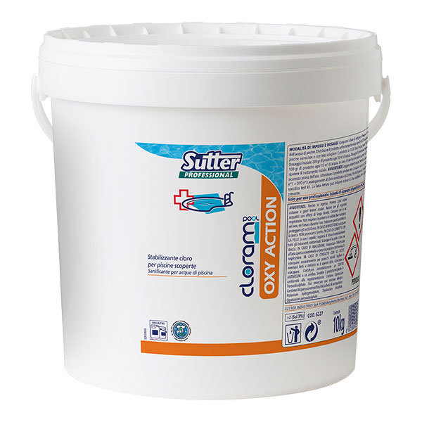 Sanificante per acque di piscina. Composto a base di ossigeno attivo da utilizzare per l'ossidazione delle sostanze organiche e chiarificazione dell'acqua di piscine clorate. Da utilizzare altresì per il trattamento senza cloro dell'acqua di piscina, in a
