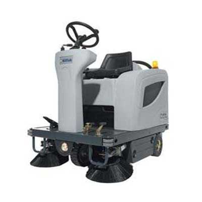 Spazzatrice con operatore a bordo. Completa di 4 batterie ed 1 carica batteria. Pista di pulizia con due spazzole laterali 1100 mm.